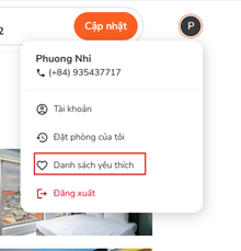 Thêm sản phẩm vào danh sách: Truy cập để xem thông tin khách sạn -> Nhấn vào biểu tượng trái tim để thêm vào mục “Danh sách yêu thích”