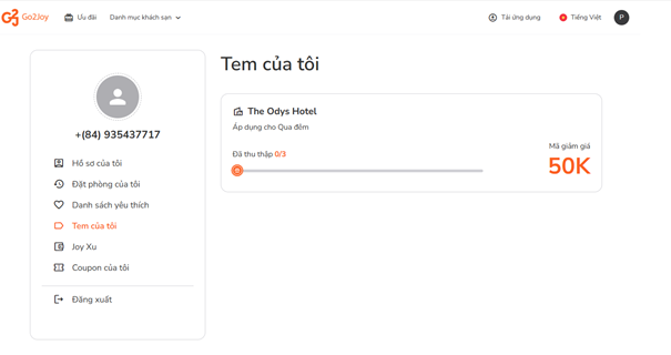 Joy Xu là khoản thưởng tích lũy được khi đặt phòng khách sạn trên Nền tảng Go2Joy.