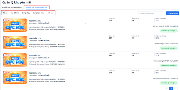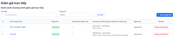 Chương trình khuyến mại: Liệt kê các chương trình khuyến mại đang diễn ra